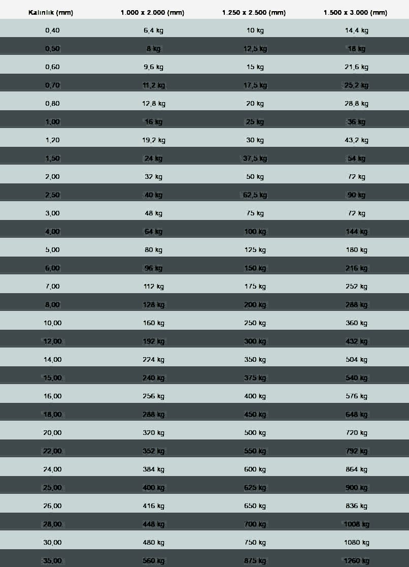 Ağırlık Tablosu