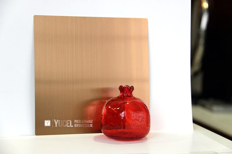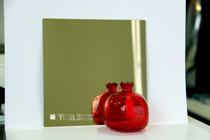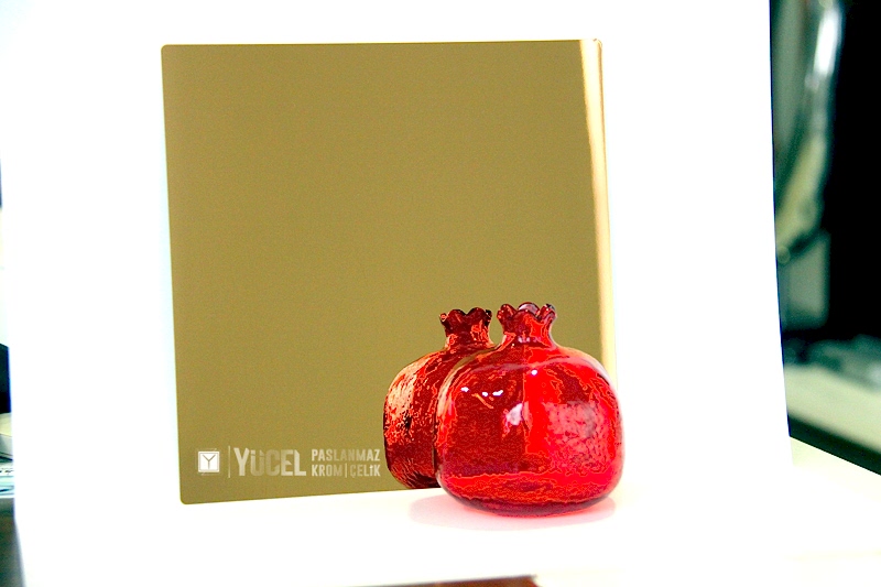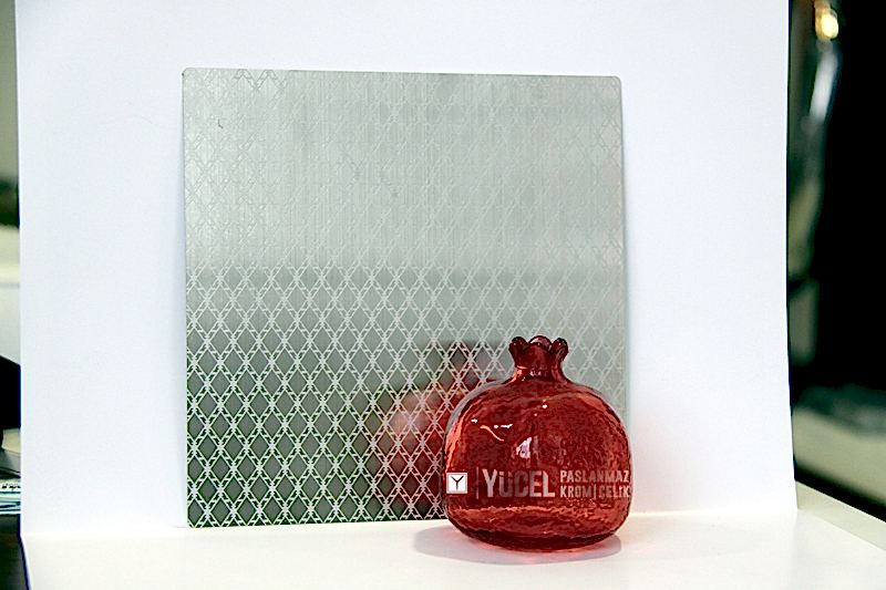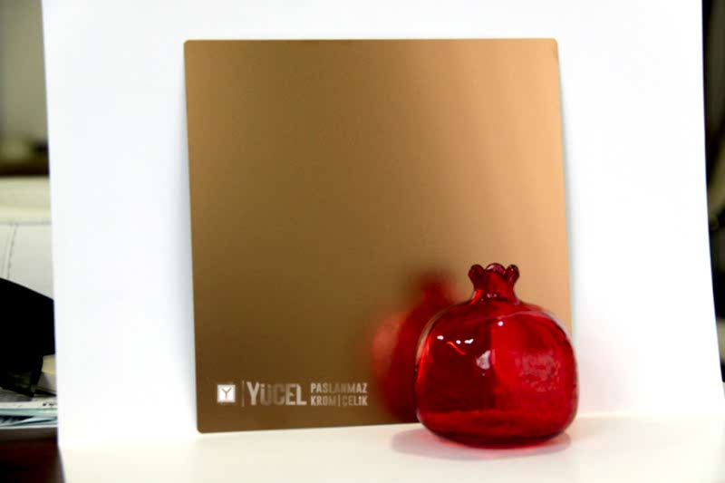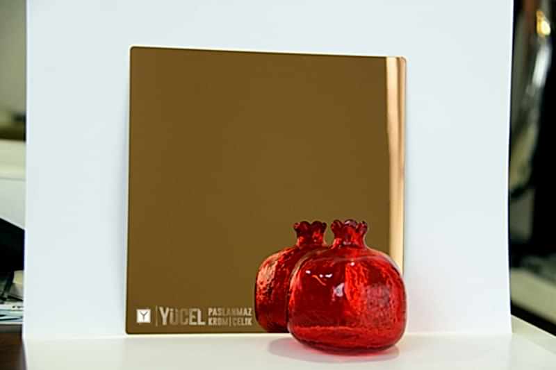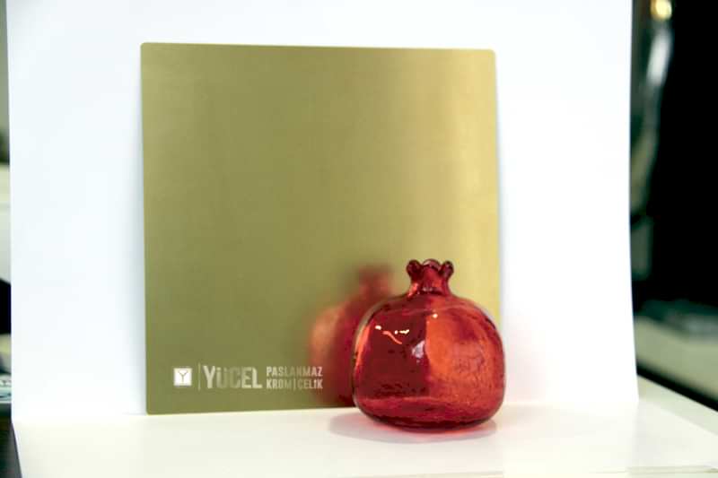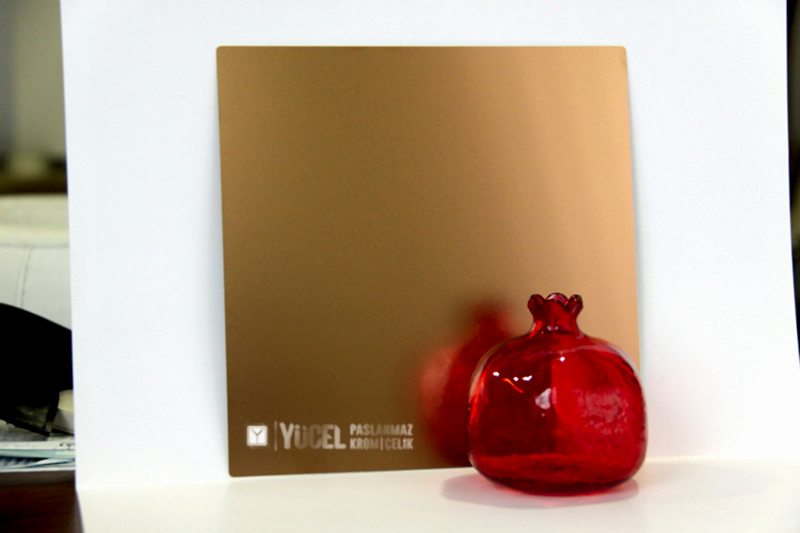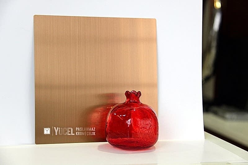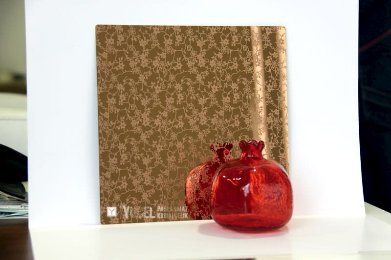 Yeni Desenli Paslanmaz Çeliklerimiz stoğumuzda. Çalışmasını kendimiz yaptığımız desenli paslanmazlar sarı ayna, ayna ve taşlı sarı olarak bulunmaktadır. Desenli Paslanmaz Çelik lerin kalınlıkları 0,80 mm dir. Renkli Paslanmaz Çelik lerin kalınlıkları desenli paslanmazlara göre daha geniştir.